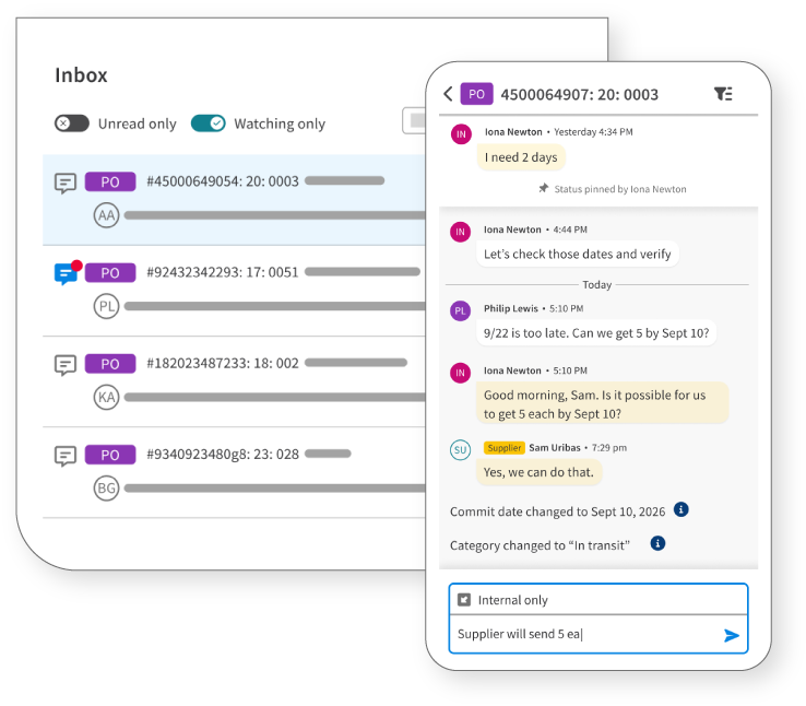 Break down silos between planners, buyers, and suppliers with shared priorities and real-time visibility